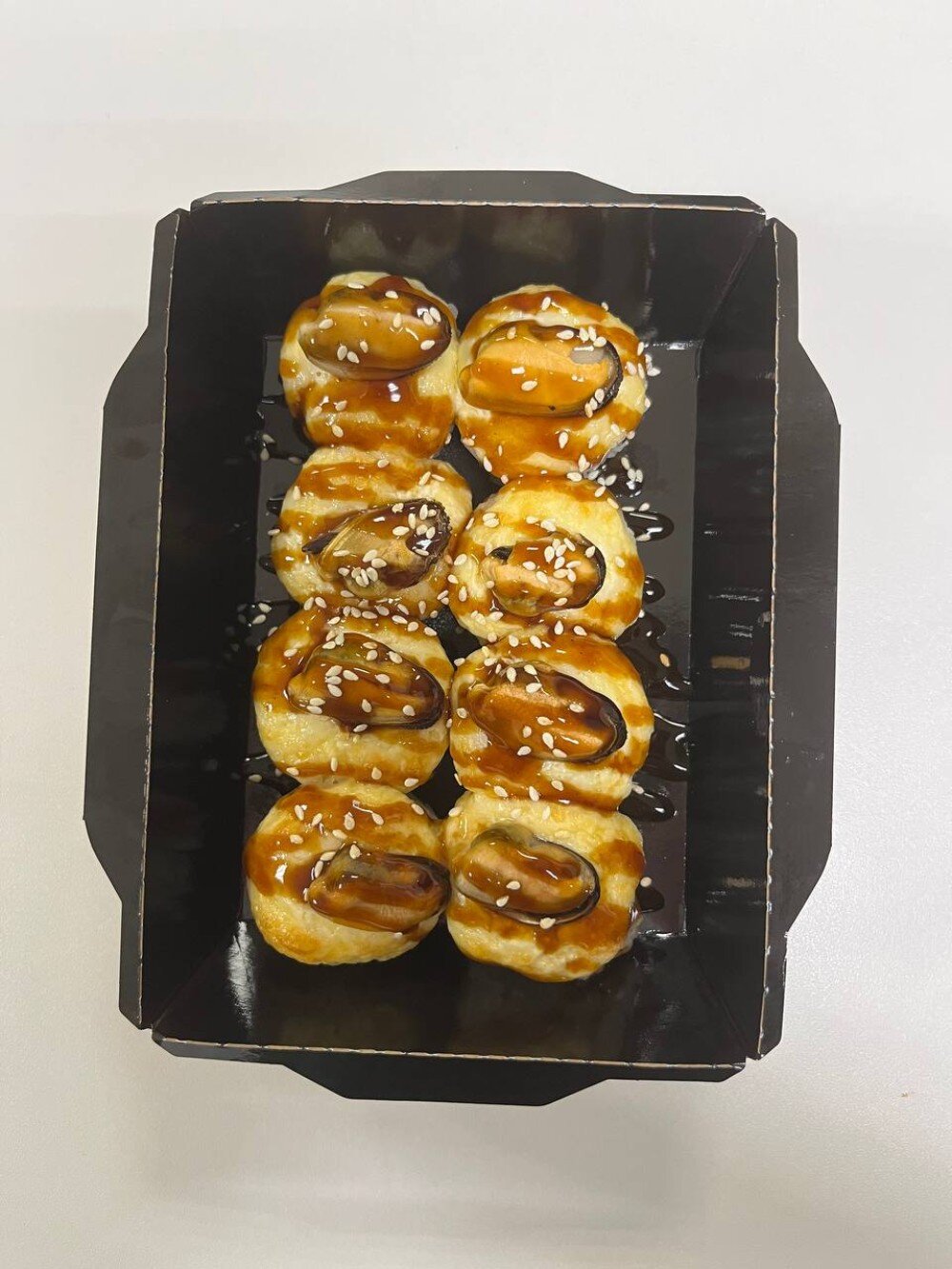 Рис нори творожный сыр жаренный лосось сырная шапочка мидия очищенная соус унаги